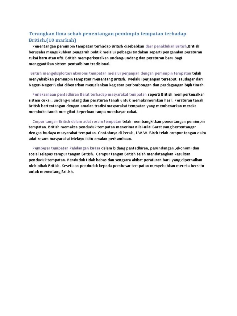 Contoh jawapan esei sejarah kertas 3 tingkatan 4 bab 10 cute766.